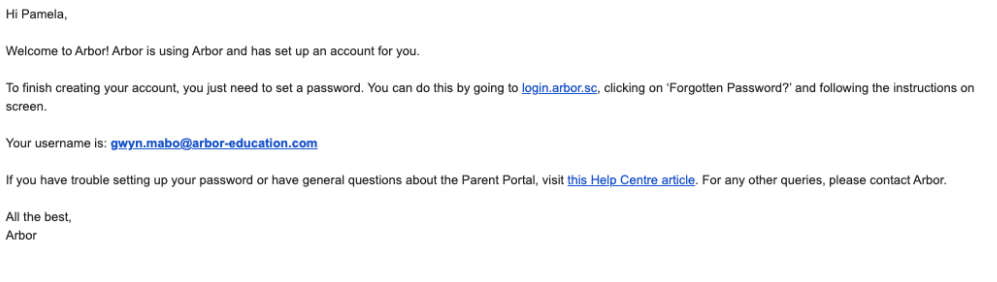 The welcome email from school will contain your login details and a link that will take you to the browser version of the Parent Portal where you need to set up a password.