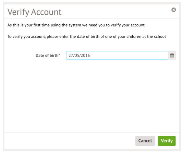 As a security precaution, you will then be asked to confirm one of your children’s dates of birth. Once you click verify, you will now be logged in!
